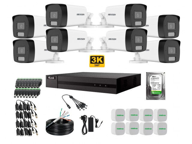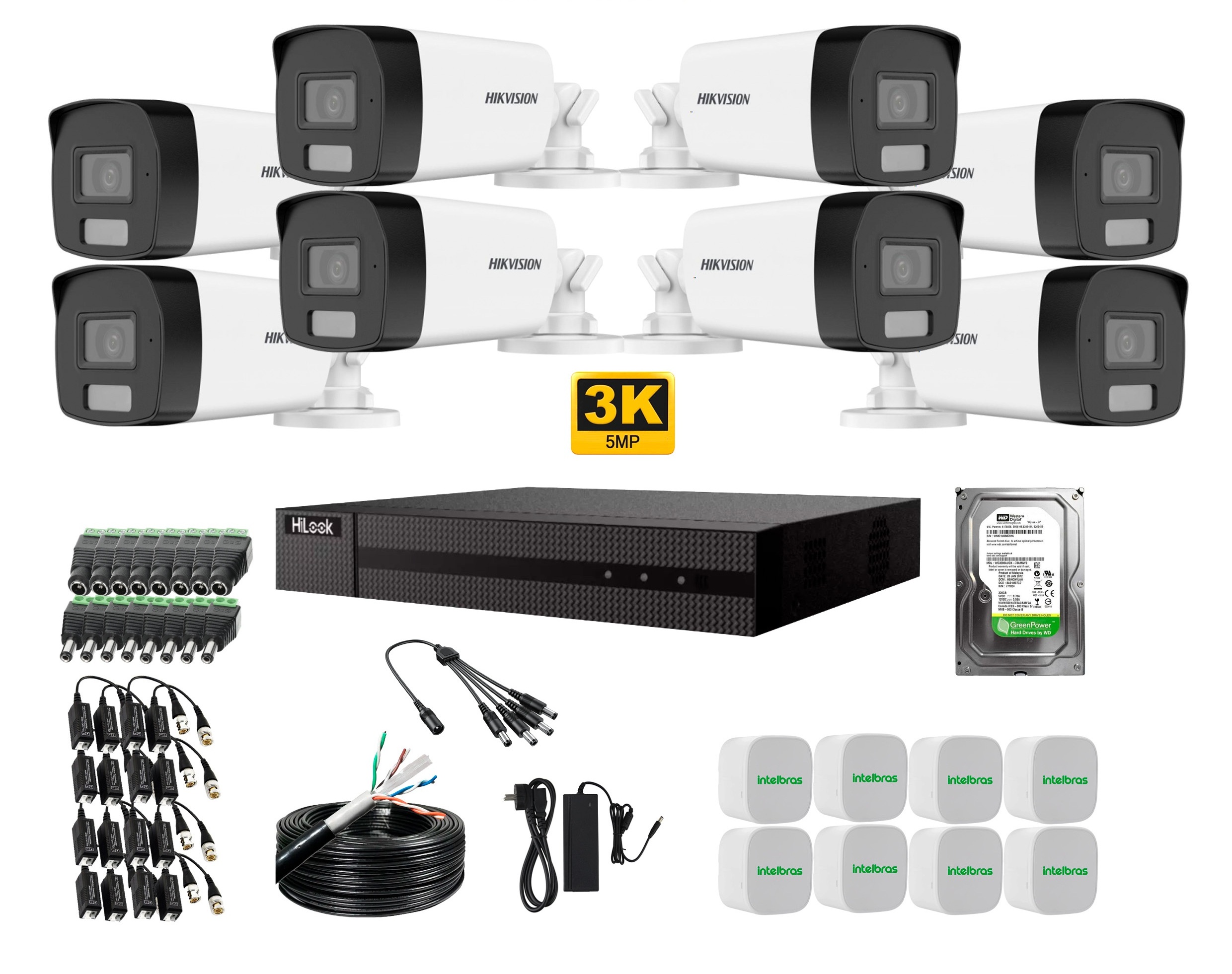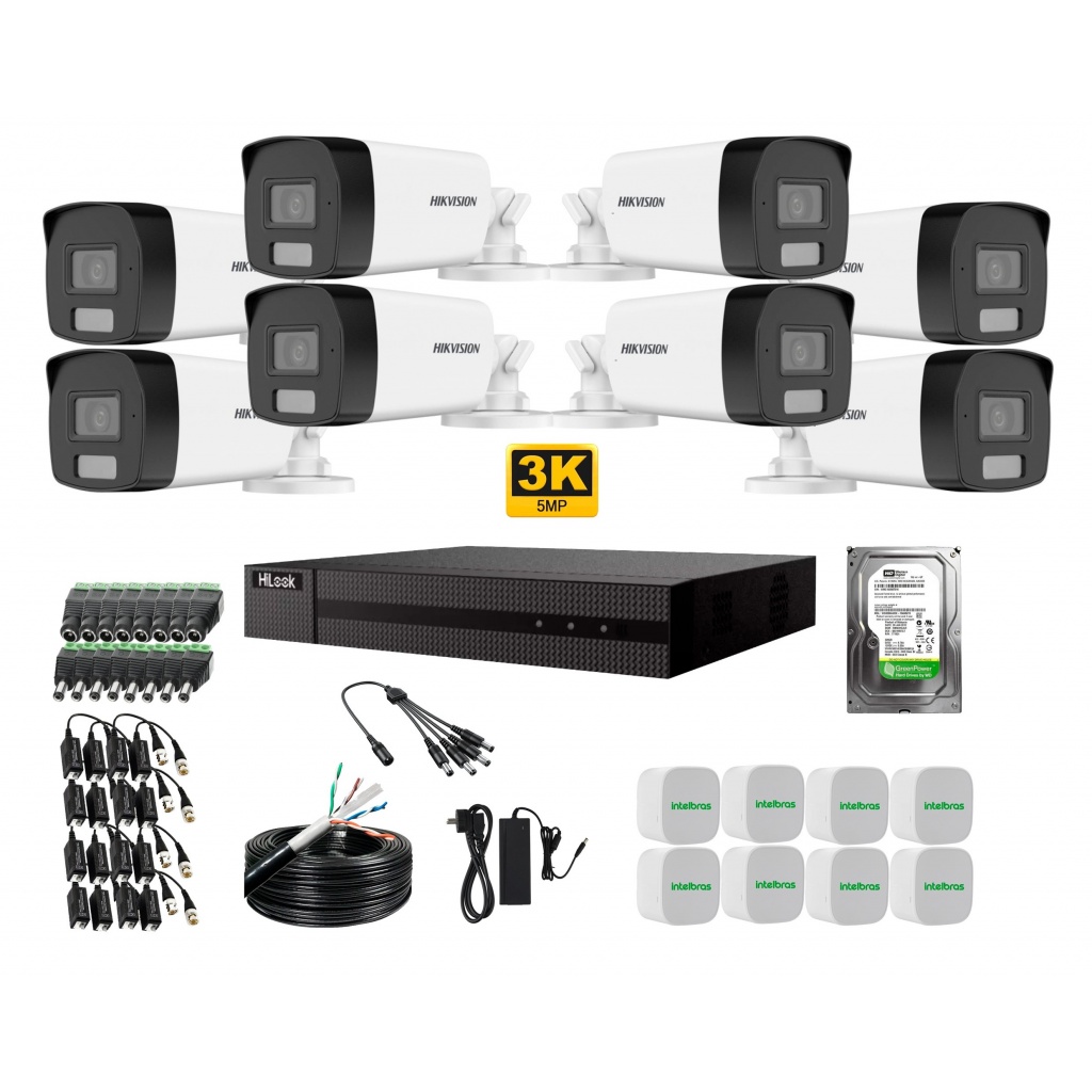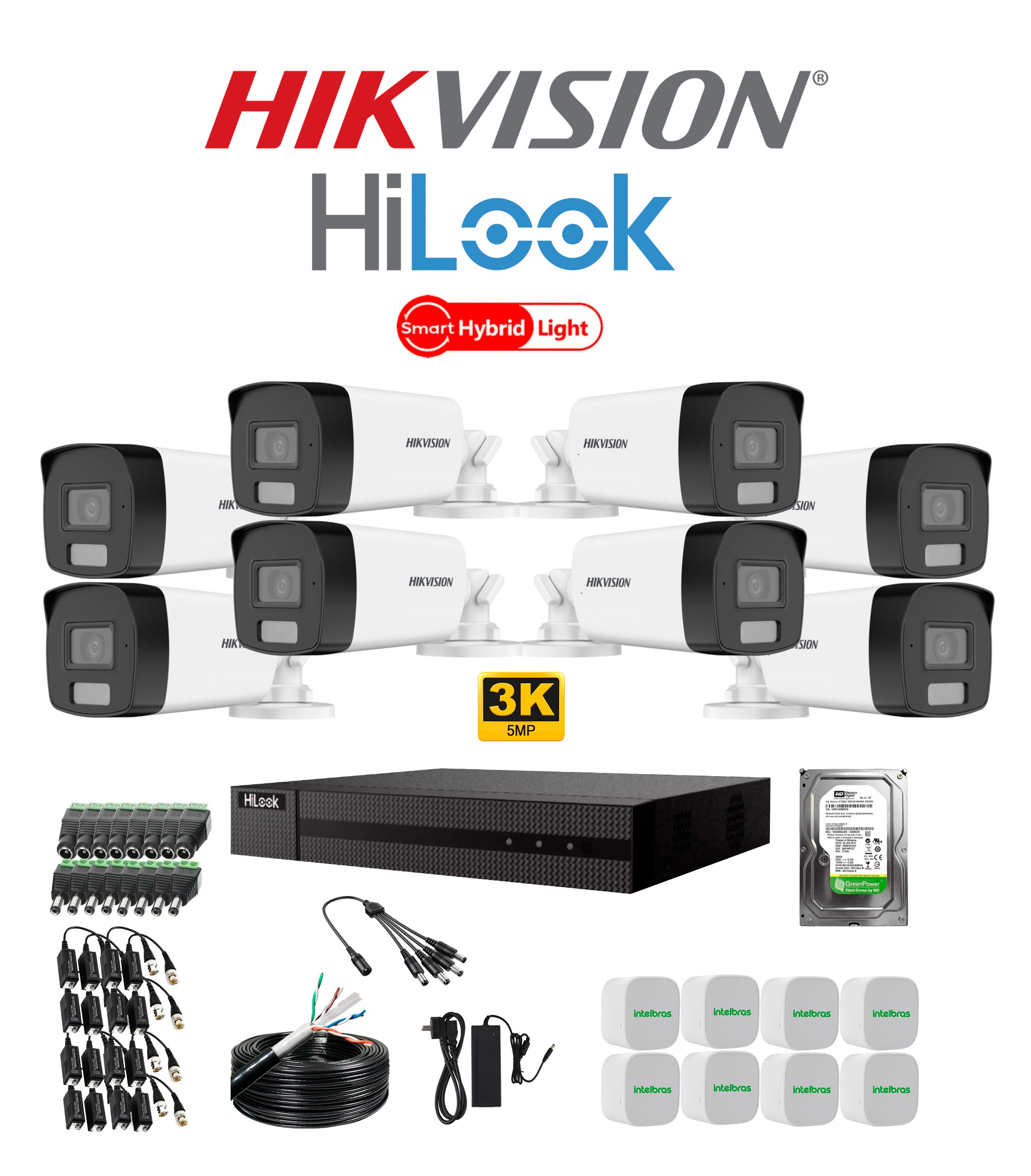 KIT DE 8 CÁMARAS HIKVISION SMART HYBRID LIGHT 5MP Y DVR HILOOK