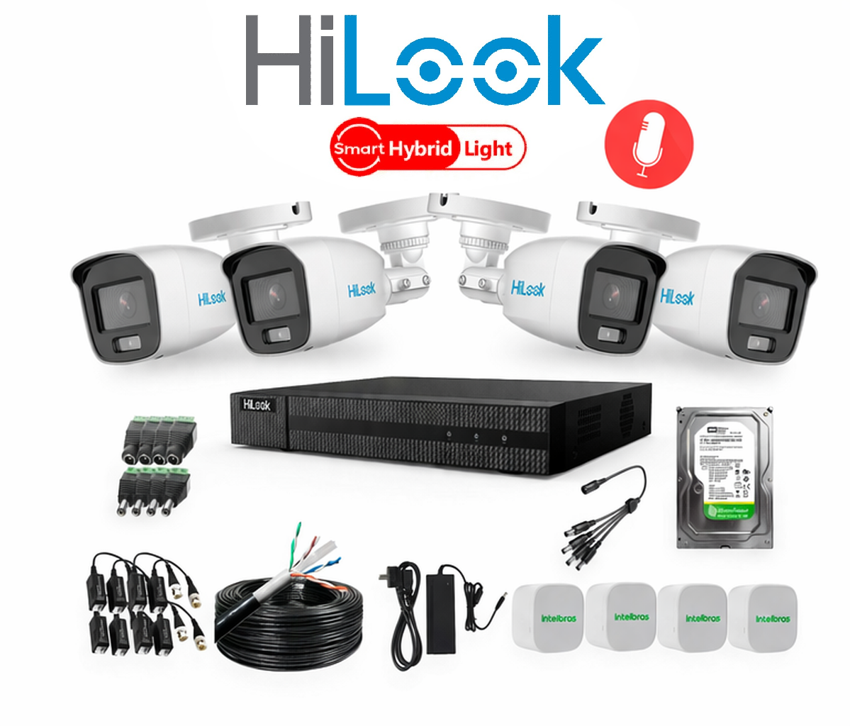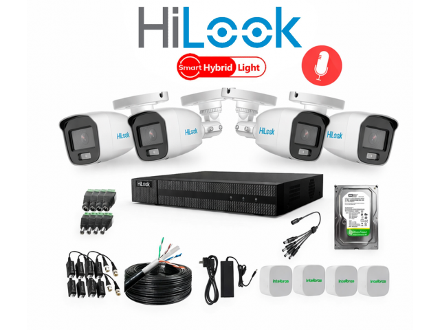 4 - CAMARAS HILOOK 2MP BULLET EXTERIOR - PLASTICO - C/AUDIO - THC-B127-LPS